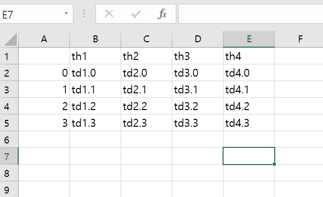 tabulate(data, ["th1", "th2", "th3", "th4"])//The names of the columns in the CSV file