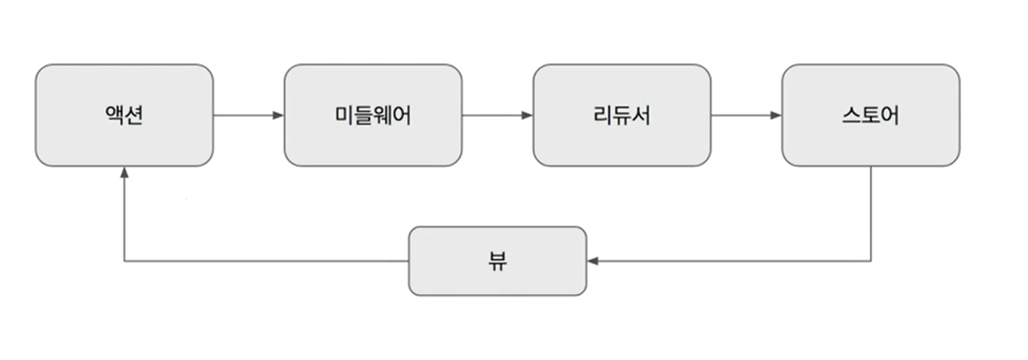 - 미들웨어 : 액션 처리로, 여기서 여러가지 기능을 넣을 수 있습니다.