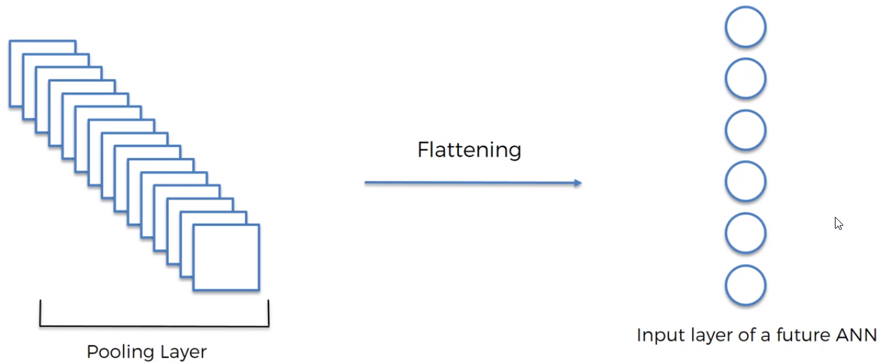 flatten 과정은 마지막 output layer을 1차원의 벡터 데이터로 변형하는 과정이다. 여기서 이미지 데이터를 1차원 배열로 만드는 것이 문제가 되지 않을까 생각할 수 있다. 하지만 앞의 여러 layer를 통해 입력 이미지에서 얻어온 특이점 데이터가 된 것이므로 1차원 데이터로 변형해도 무관하다.