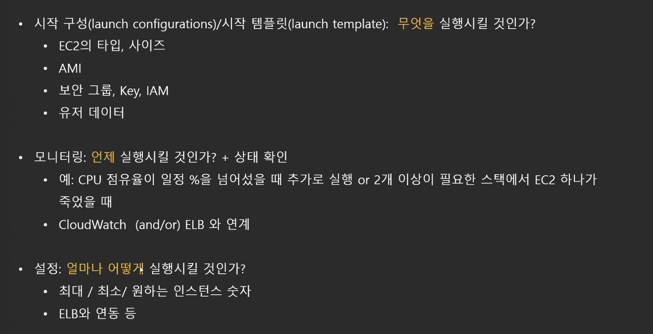 - 오토스케일링, Elastic Load Balancer (ELB), CloudWatch