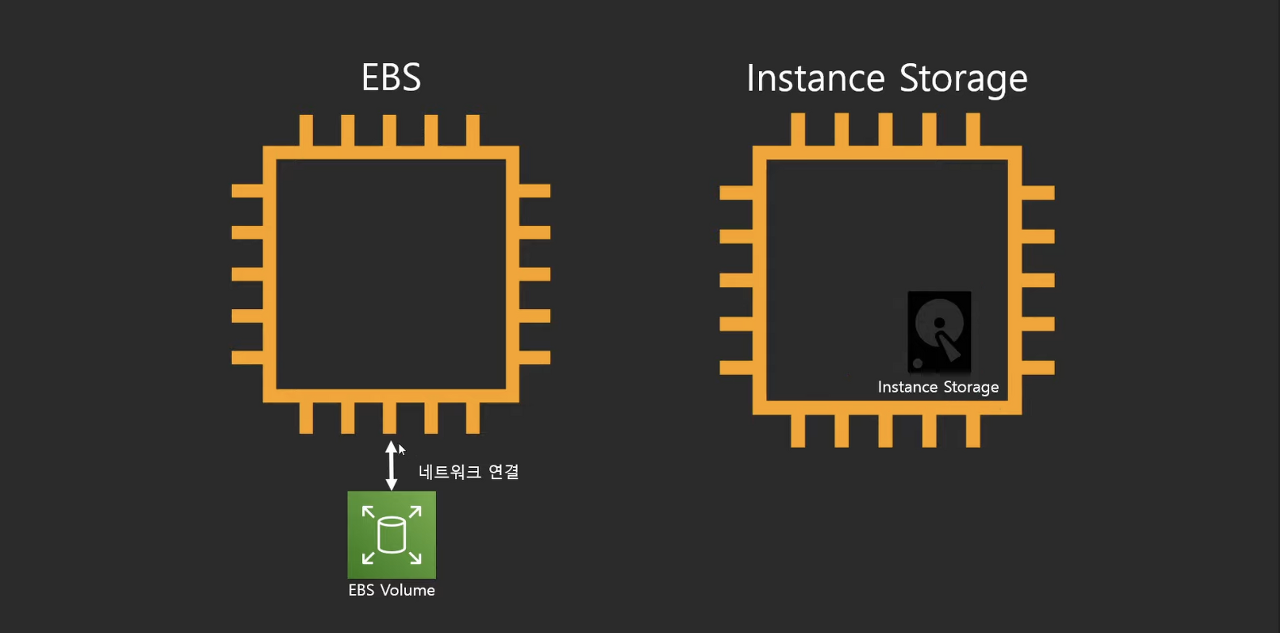 장점 : 인스턴스 스토리지가 EC2안에 있으면 속도가 굉장히 빠르다.