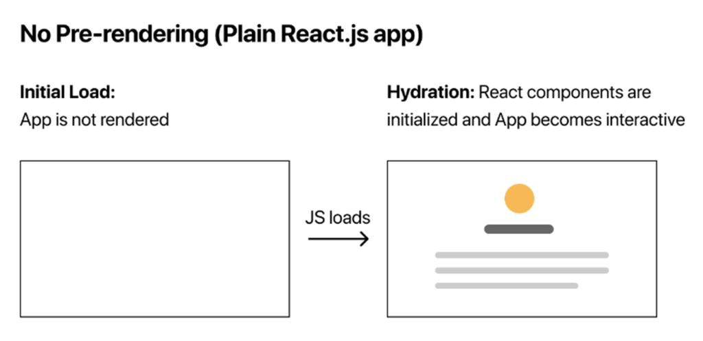 [initial Load] : 정적 페이지 render ⇒ [hydration] JS 코드 매칭 [컴포넌트 초기화]