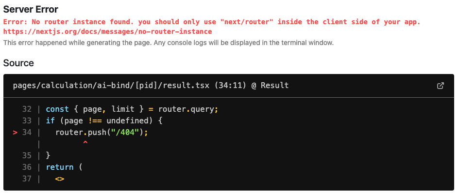 No Router Instance During Pre-rendering (SSR or SSG) you tried to access a router method push, replace, back, which is not supported. In a function Component you can move the code into the useEffect hook. In a class Component, move any calls to router meth