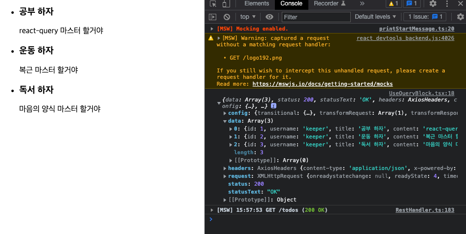 간단하게 리액트 프로젝트에서 msw로 mock API를 생성하여 테스트해보았습니다.