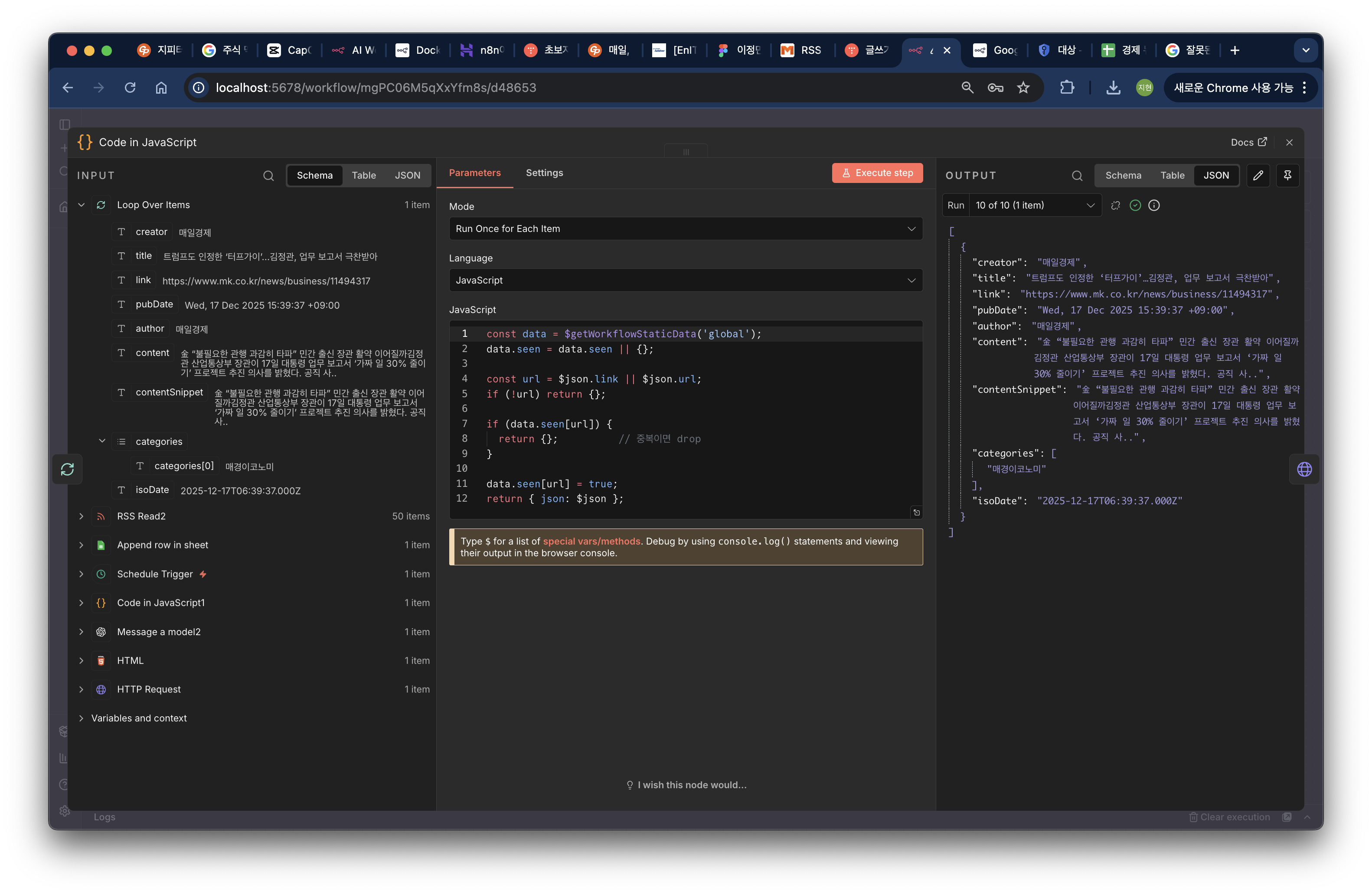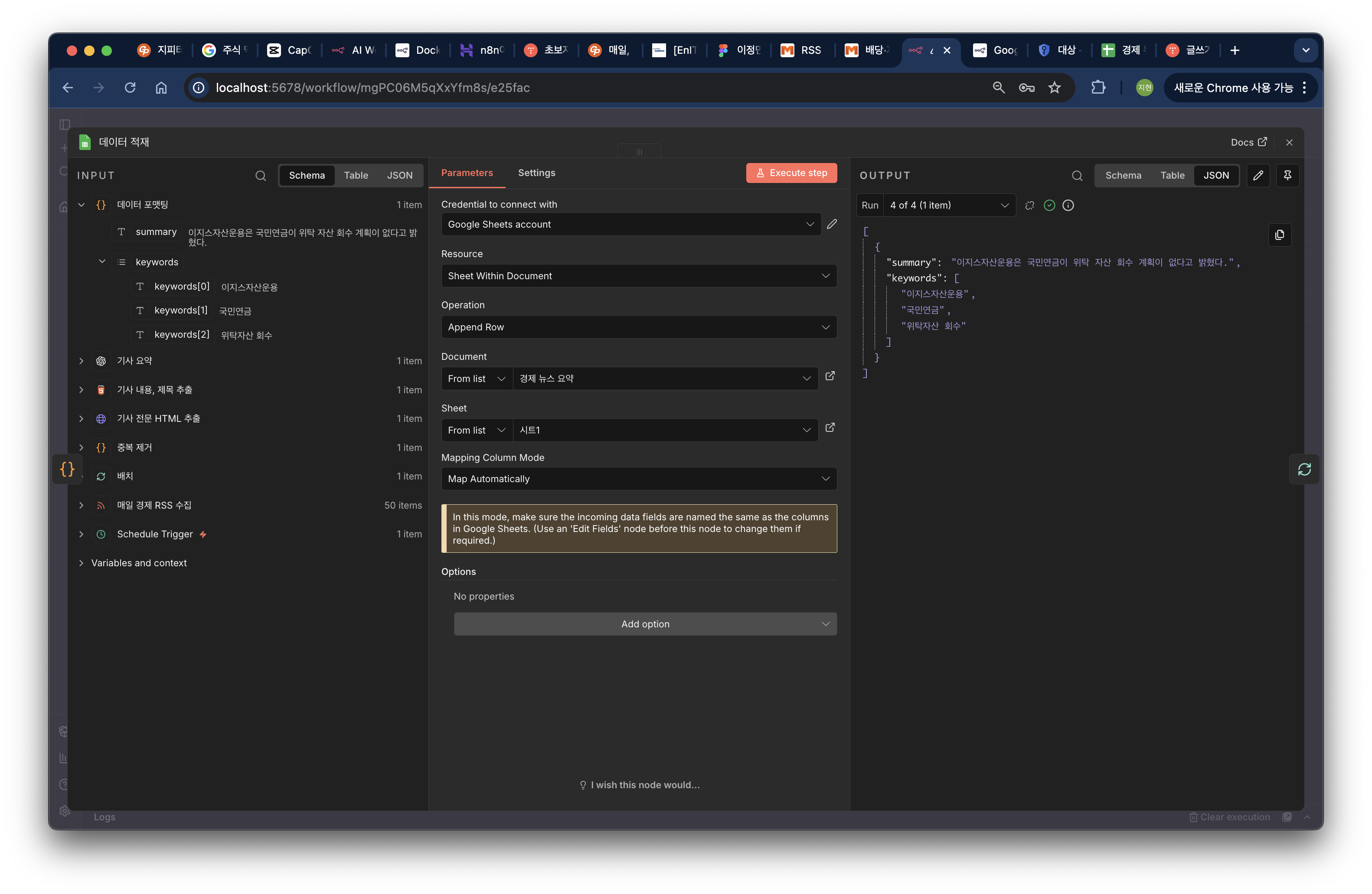 [LLM 경제 뉴스 요약 서비스] # 01. n8n 워크플로우 구축 (n8n 사용법)